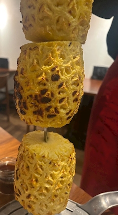 シュラスコ🍖 しかもパイナップル😳🍍👏🏽 (悟空風に言うとペーナップル)🫡w あったかいパイナップルってどうなんだろう〜?🤔 って思ってたら…💭 ちゃんと美味しかったぁ〜🤤🧡💛🧡